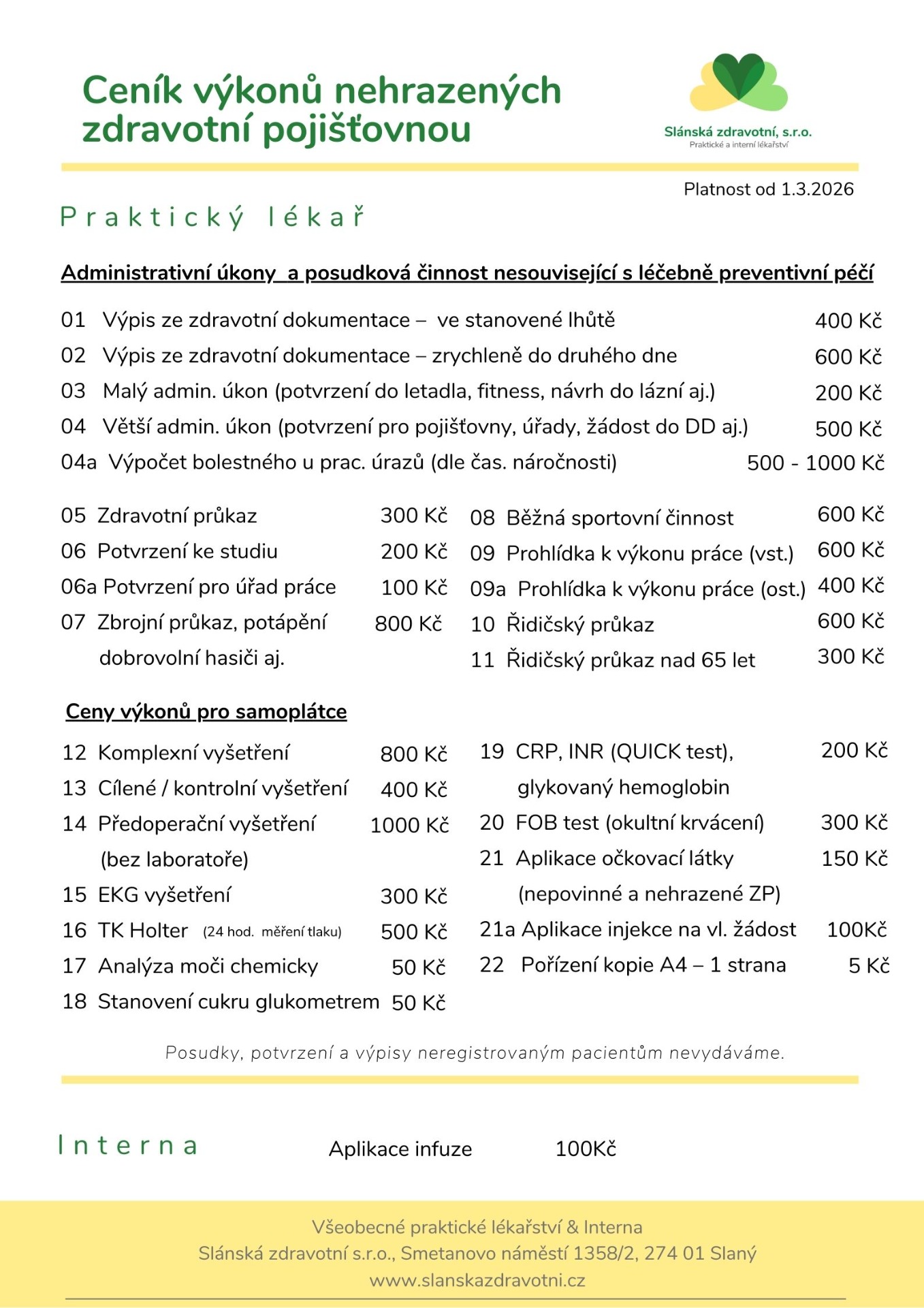 Slánská zdravotní s.r.o., IČ: 24315346, V sadech 1081/4a, Praha 6